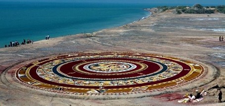 تنوع رنگ درکوه های جزیره هرمز موجب شده Ú©Ù‡ هرساله گروه های هنری ÙØ±Ø´ خاکی را با مواد طبیعی در ساØÙ„ این جزیره بگسترانند